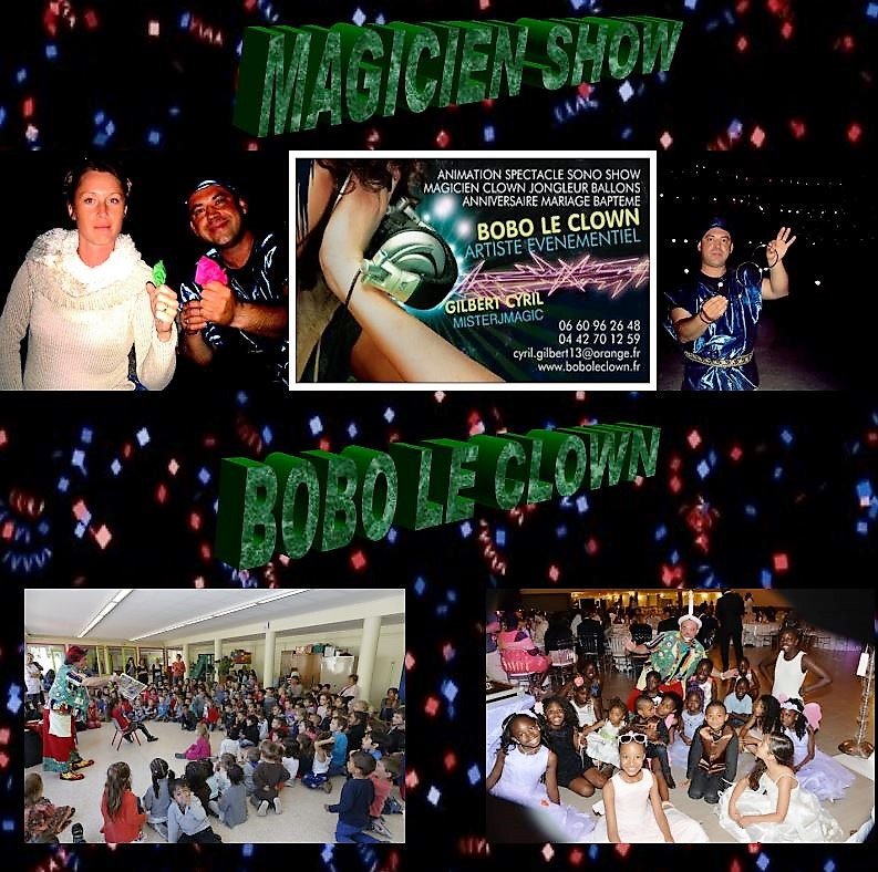 Bobo le clown magicien Marseille Toulon Aubagne 13 clown à domicile magicien pour enfant animation anniversaire école du cirque spécialiste du spectacle magie sculptures ballons.